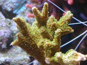 Kirschfarbene Montipora Montipora digitata Eine wunderschöne Steinkoralle mit kirschfärbigen Wachstumsspitzen - leider kommen die auf dem Foto nicht so rüber Update:12.12.05 Noch leben Teile dieses Tieres, ich versuche alles um dieses Tier am Leben zu halten. |